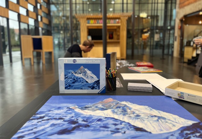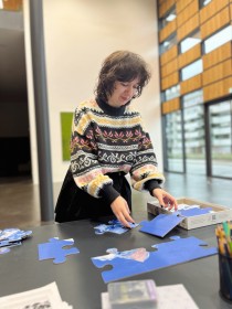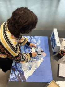 Dans le hall du Frac, de nouvelles activités sont à découvrir ! Installez-vous autour de notre grande table, où différents dispositifs sont proposés pour expérimenter seul·e, en famille ou entre ami·e·s et découvrir les œuvres de la collection autrement ! Des puzzles allant de 24 à 1500 pièces, un jeu de 7 familles et un memory en lien avec le travail de Cécile Bart.