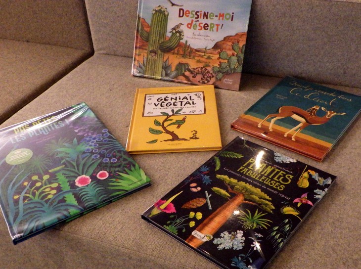 Le tout porté par de belles illustrations ! Celles de Jean Mallard (Pas bêtes, les plantes ! – texte de Philippe Nessmann), de Mélissa Faidherbe (Plantes fabuleuses – texte de Véronique Barrau), de Marcel Barelli (Génial végétal – texte de Fleur Daugey), de Capucine Mazille (Dessine-moi un désert : les milieux arides – texte d’Emmanuelle Grundmann), de Toni Demuro (Quand je marche dans le désert – texte de Mickaël El Fathi)… Et cette solidarité, ce n’est pas que celle des plantes, celle des humains est aussi représentée, avec un livre plus politique à destination des ados, La Terre, notre combat de Louise Pluyaud et Élodie Flavenot, présentant les luttes pour le climat d’adolescents de différents continents.