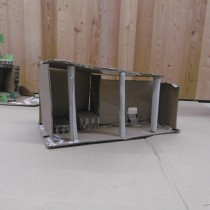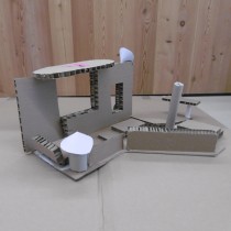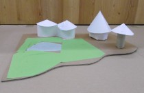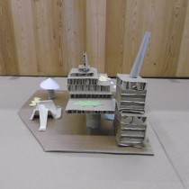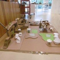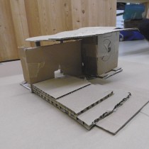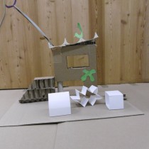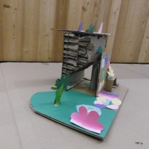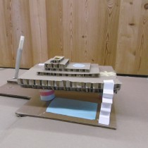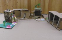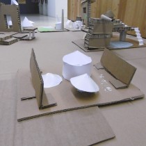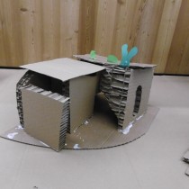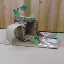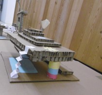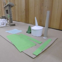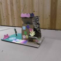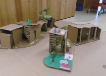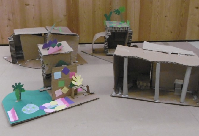 Le dimanche la présentation des livres a été suivie de deux ateliers. Les enfants ont créé chacun une construction, librement inspirée des nombreux modèles historiques vus dans les ouvrages, avec du carton alvéolé de plusieurs épaisseurs, du papier ainsi que des formes de couleur préalablement découpées.